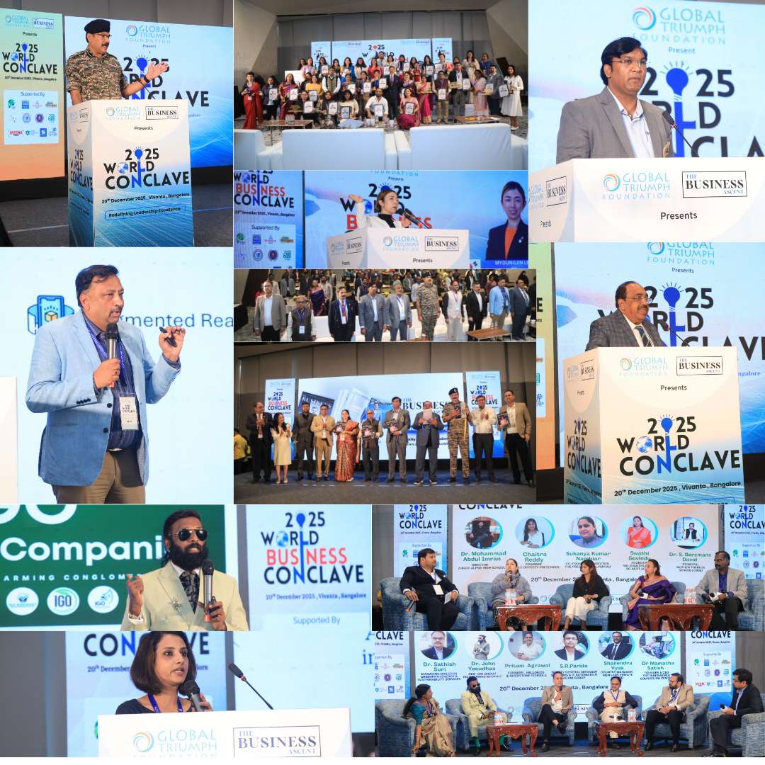 World Conclave 2025 , organized by Global Triumph Foundation and The Business Ascent, in association with Image Planet was held with great fervor at Vivanta By Taj , Bangalore on 20th December 2025. The event saw participation from over 200 top business leaders, educators, and women entrepreneurs from across the nation.