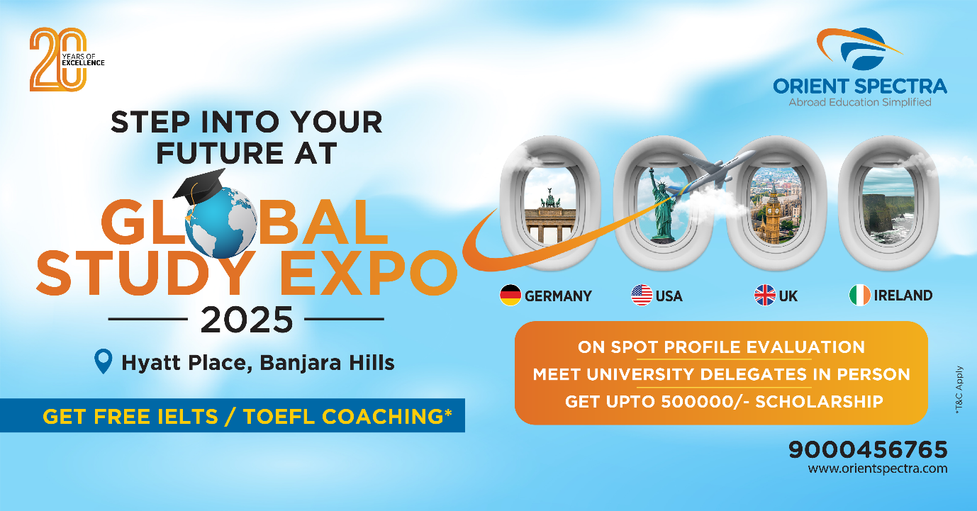 Hyderabad, India – Orient Spectra, a leading name in international education consultancy, proudly announces its flagship event — Global Study Expo 2025, scheduled to take place on 11th October 2025 (Saturday) at Hyatt Place, Banjara Hills, Hyderabad. This one-of-a-kind expo offers aspiring students a chance to engage directly with top international universities and unlock life-changing opportunities to study […]