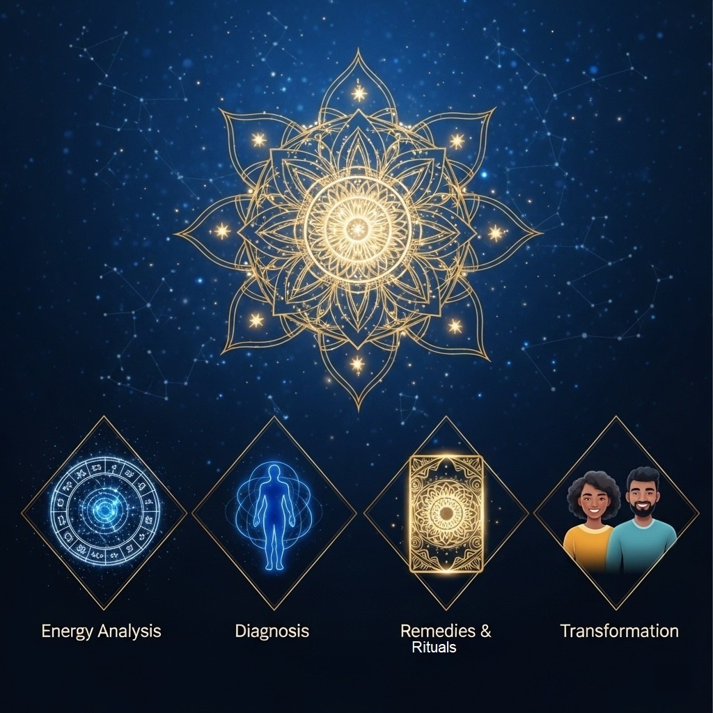 delivers structured energy corrections, chakra balancing, and cosmic healing that transform lives.